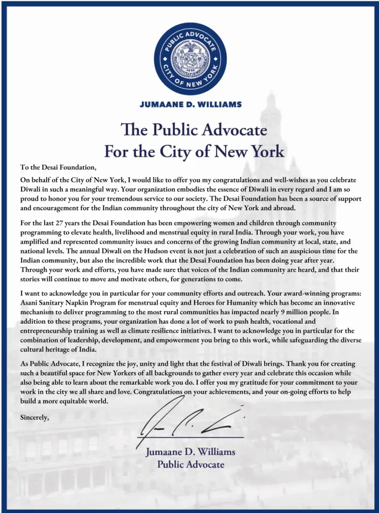 “I am so proud that I have had the chance to meet all of you and hear some of your stories. It is so impressive that the Desai Foundation understood the importance of finding local people like all of you to do this important work. I am so impressed by the model of this program, and so delighted to hear about all the things you are doing as Heroes for Humanity.”