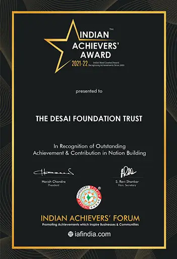 NJ India Award for Outstanding Achievement in Social Welfare Program by NGO