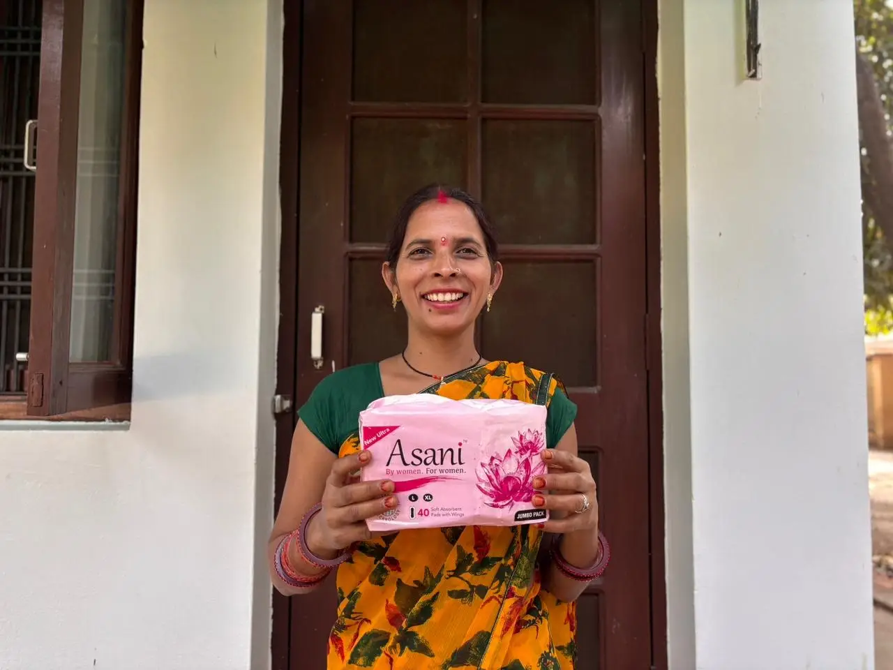 One day, Mamta attended a Menstrual Hygiene Management (MHM) session organised by Desai Foundation Trust in her village. There she learned about Asani sanitary pads and their qualities. She got a sample packet to try. After using them, she felt soft, comfortable, and free from the problems she faced earlier.