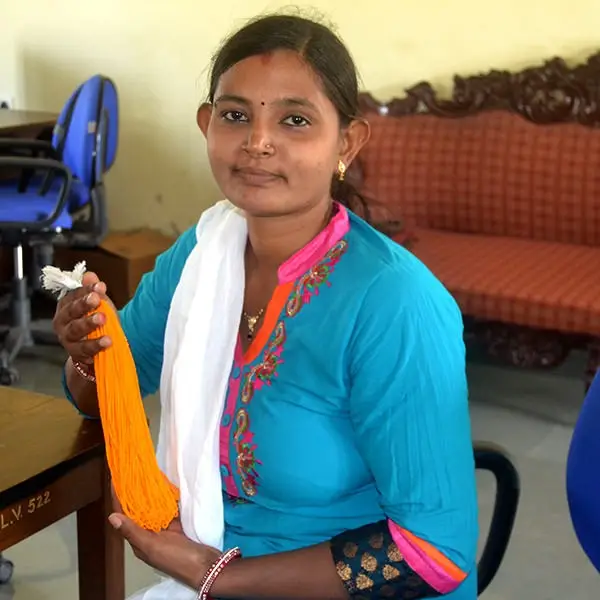 I have doing beadwork provided by the Desai Foundation Trust. I was unemployed before this. Since I learned this skill, I now earn at least Rs. 3000 per month. This is very helpful to support my children’s education, and I also have enough to buy things for myself. Earning for myself is the best feeling.